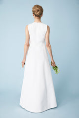 If you’ve been searching for the most classic, chic white gown for your wedding, search no longer. Our Amy gown cut in Pure White is ideal for the timeless bride who knows more is not always more. With a deep hem that can accommodate all heel heights, this gown will let you shine on your special day.