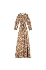 Violette makes an elegant return! She’s cut in a delicious, light silk blend with a gathered neckline, full sleeve & a separate waist sash. In ultra flattering Cocoa Doge Floral, Violette is an understated but powerfully chic choice for any special occasion.