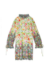 Delphine is our newest high coverage; high style shift and we are in love! Luxuriously detailed, Delphine is cut in our delicious Spring scalloped embroidered lace, with a fully lined body and dramatic ruffled neck and bell sleeve. She’s ready to do the talking while you do the walking!