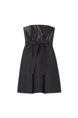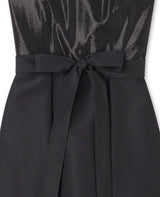 A cocktail dress that begs to be invited to your best party this season, Talley has something to offer everyone. The strapless, faille-backed lamé bodice is cinched with an expertly tied MM bow. Just the right amount of boning in the bodice guarantees you won’t be adjusting all night.